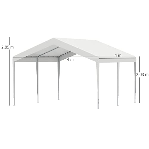 Outsunny Garage Portatile 4x4m con Tettoia per Macchine e Barche, Matrimoni, Feste, Gazebo da Giardino in Acciaio Zincato, Bianco