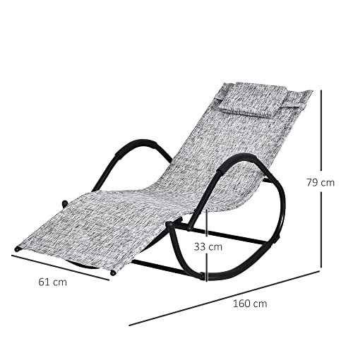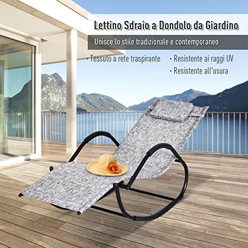 Outsunny Lettino Sedia Sdraio a Dondolo Zero-gravity da Giardino, Impermeabile, Sedia a Dondolo Esterno con Poggiatesta, Grigio 160x61x79 cm