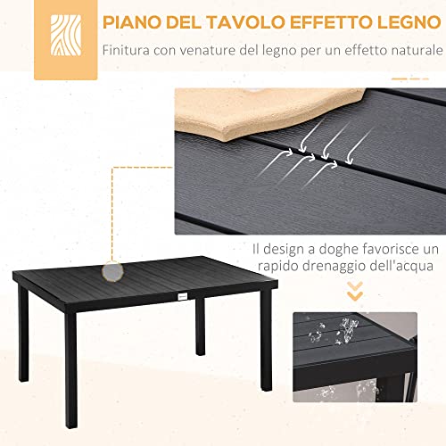 Outsunny Set di mobili da giardino 5 pezzi in alluminio, set da tavolo con 4 sedie regolabili per esterni per 4 persone, nero