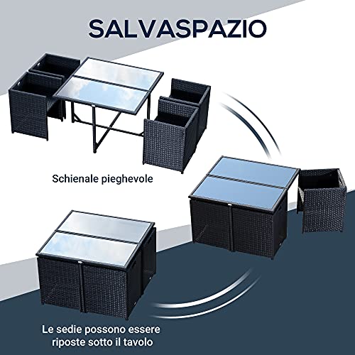 Outsunny Set Mobili da Giardino 5pz Set Tavolo da Pranzo con 4 Sedie con Cuscini Combinabili a Rettangolo