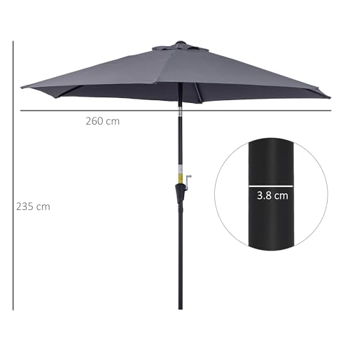 Outsunny Ombrellone da Giardino 2.6x2.4 m con Manovella e Testa Inclinabile, in Alluminio e Poliestere Grigio e Nero