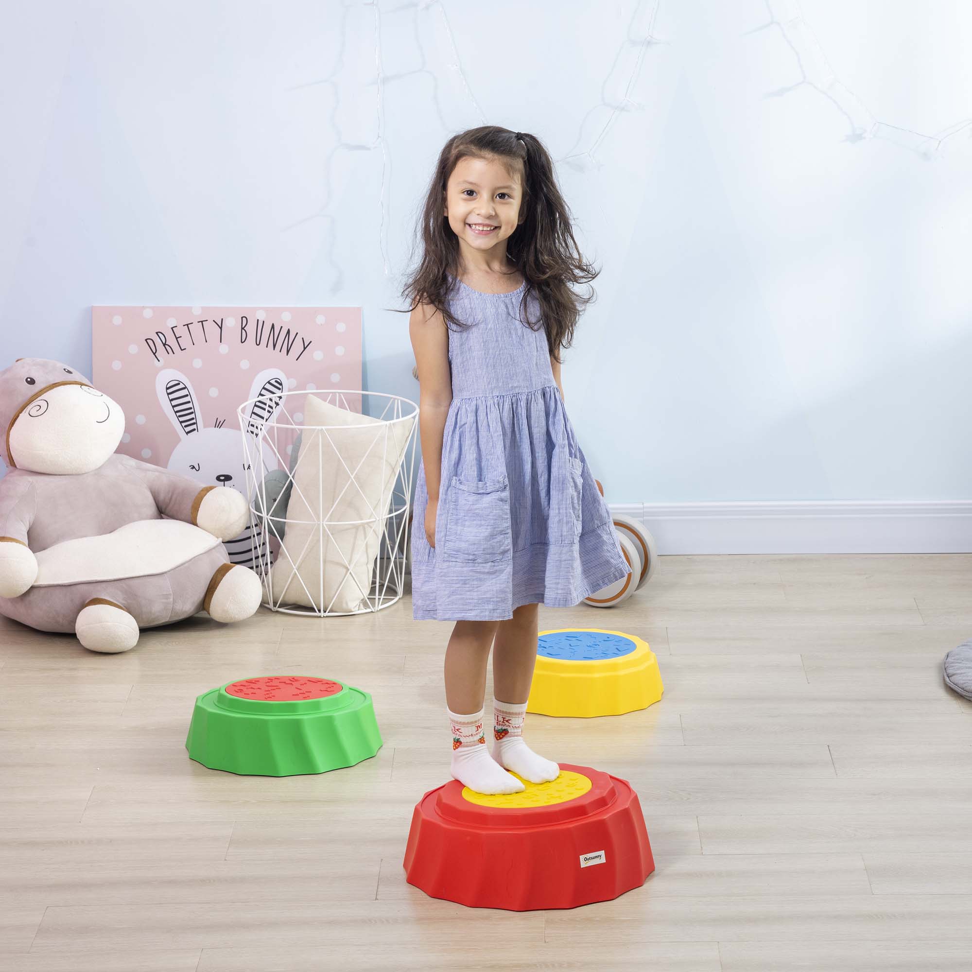 Le pietre di fiume giocattolo Outsunny sono un'attività divertente che aiuta a migliorare l'equilibrio e la coordinazione. Con questi 3 pezzi, i bambini possono giocare e saltare da una pietra all'altra e inventare giochi man mano che procedono. Il fondo antiscivolo mantiene i giochi da esterno al sicuro, riducendo il rischio di incidenti mentre i bambini giocano. Una volta terminato il percorso di equilibrio, i sassi possono essere impilati per risparmiare spazio e tenere in ordine la stanza.