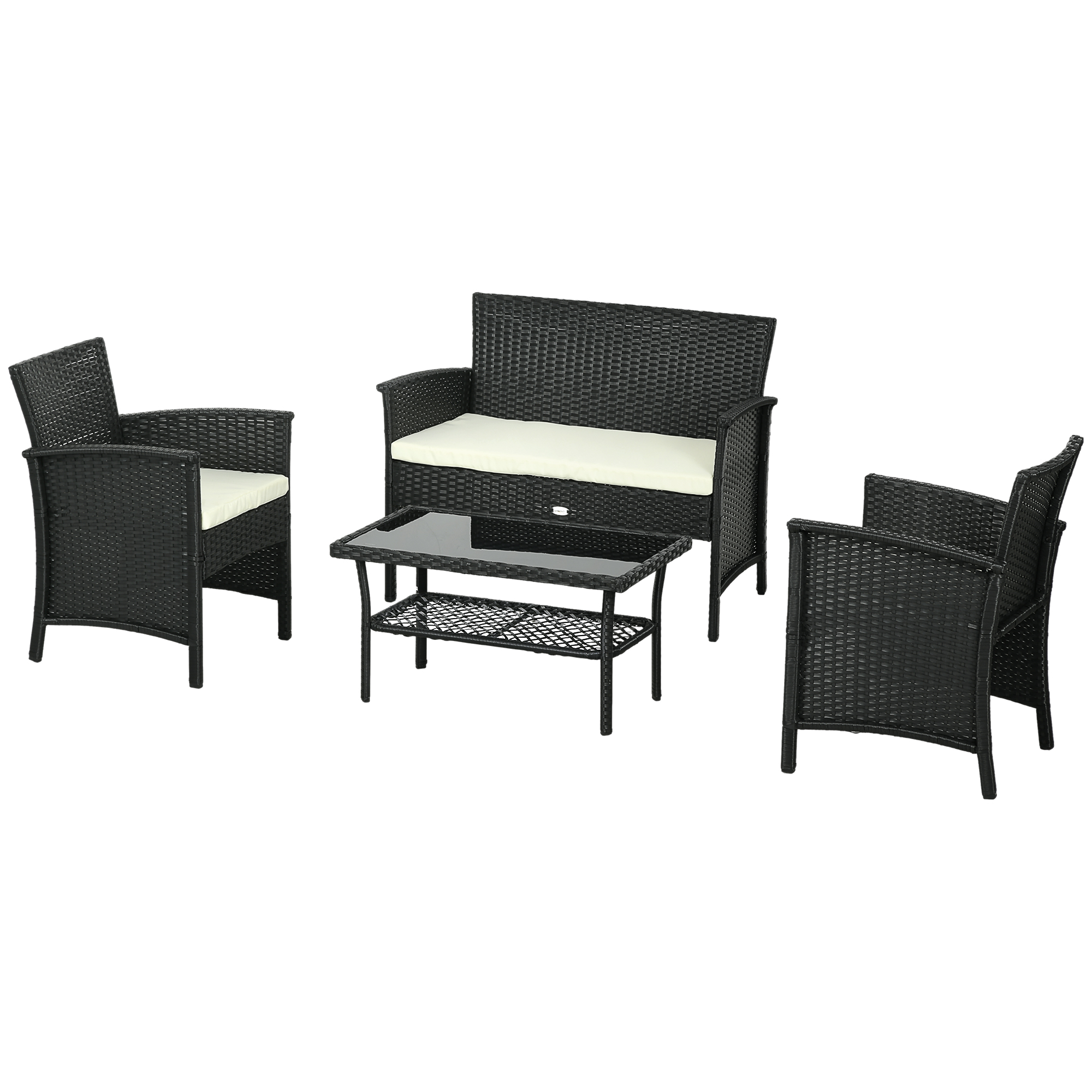 Dai un nuovo look ai tuoi spazi all'aperto grazie a questo elegante salotto da giardino Outsunny, completo di 2 poltrone da giardino, un divanetto a due posti e un tavolino. Ogni elemento del set è costruito con un robusto telaio in acciaio rivestito in rattan PE, per garantirti una durata e una resistenza superiori alle intemperie. Funzionale e raffinato, questo salottino da giardino ti offrirà momenti di relax all'aperto in totale comfort.