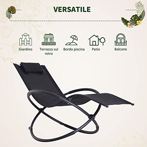 Outsunny Sedia a Dondolo Design Moderno per Interni ed Esterni Texteline 154x80x84cm Nero