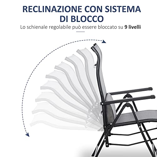 Outsunny Sedia Sdraio da Giardino Zero Gravity Pieghevole e Reclinabile a 9 Livelli con Cuscino Lombare, Grigio