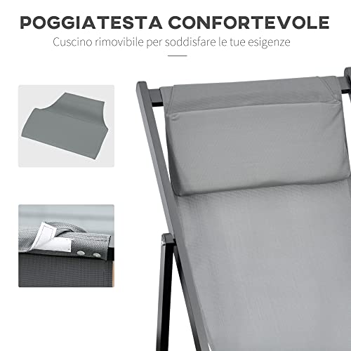 Outsunny Set 2 Sedie Poltrona Sdraio da Esterni, Pieghevoli e Reclinabili, in Alluminio, Grigio, 96.5 x 58 x 91.5cm