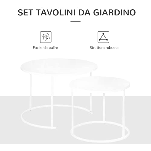 Outsunny Set 2 Tavolini da Salotto e Giardino Salvaspazio Sovrapponibili, Tavolini da caffè in Ferro, Bianco