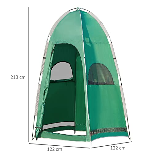 Outsunny Tenda Doccia da Campeggio Spiaggia ed Esterni con Ingresso a Cerniera, Borsa per Trasporto e Tasca Portaoggetti, 122x122x213cm, Verde