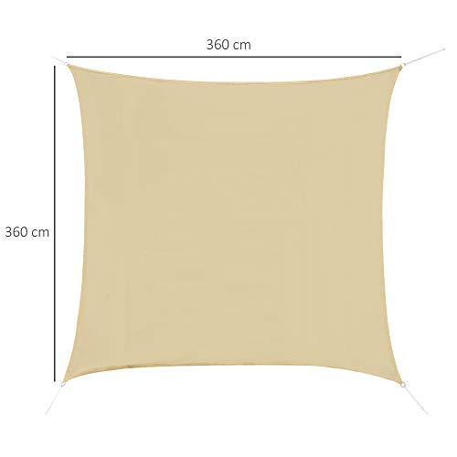 Outsunny Tenda Parasole Quadrata per Esterni in HDPE Impermeabile Traspirante, Protezione Raggi UV 95%, 360x360 cm