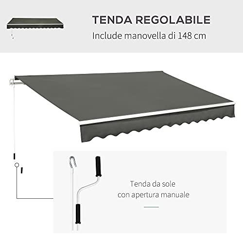 Outsunny Tenda da Sole per Esterno a Bracci 3.5x2.5m, Regolazione con Manovella, Metallo e Poliestere Grigio
