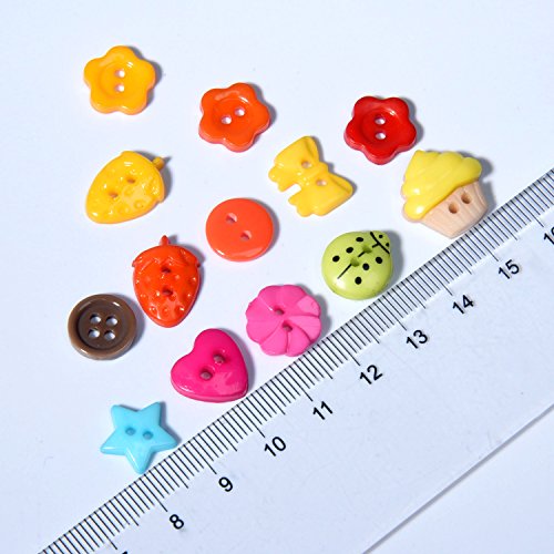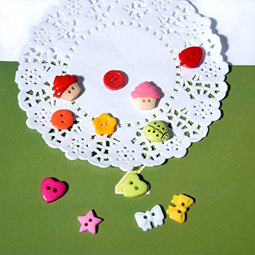 Diverse forme: questi bottoni sono disponibili in 10 diverse forme, 4 fori sul lato stretto, 2 fori piatti, stella, fiore di prugna, papillon, coccinella, gelato, cuore, fragola e fiore