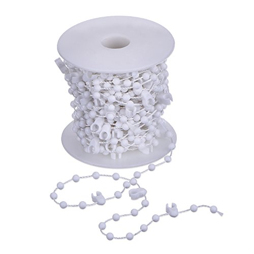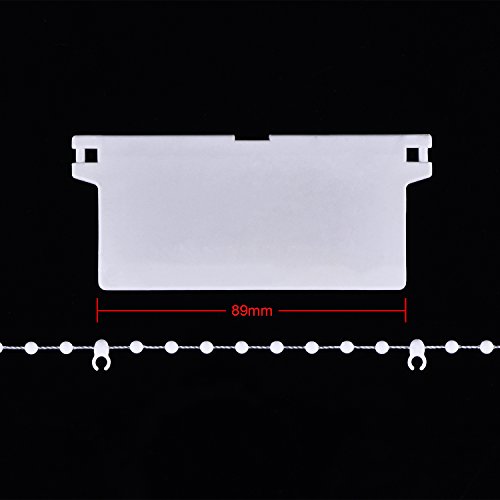 Dimensioni della catena di perline bianche: catena a maglie verticali adatta per doghe da 89 mm, 12 sfere tra ogni clip di catena, catena da 10 metri circa. Clip da 100 maglie