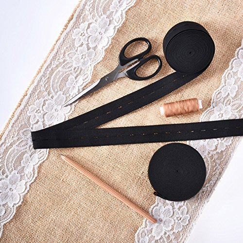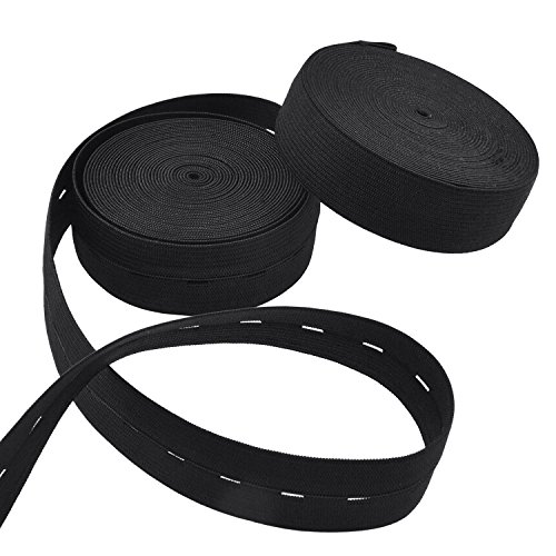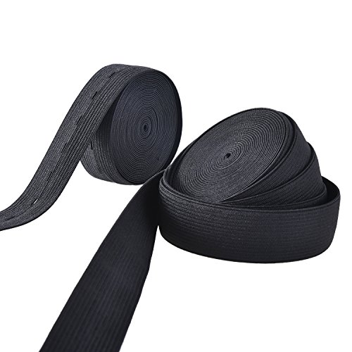 Outus 11 Yarde 1 Pollici Largo Bobina Elastica Banda per Cucire e Elastica dell'Occhiello, Nero, 2 Pezzi (5.5 Yarde di Piatto, 5.5 Yarde di Occhiello)