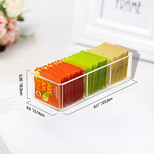 OUUoNNo Stackable Plastic Tea Bag Organizer, Plastic Tea Storage Box for Kitchen Pantry Cabinets and Countertops, Holder for Tea Bags, Coffee, Sugar Packets, Small Packets, Clear