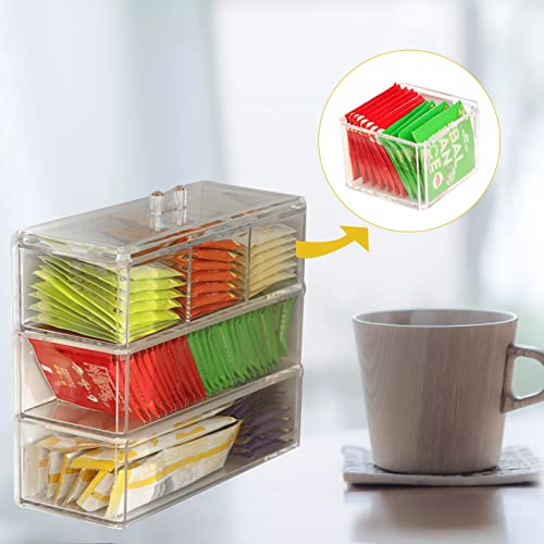Contenitore impilabile in plastica per bustine di tè, contenitori da tè in plastica, per armadietti da cucina e piani di lavoro, supporto per bustine di tè, caffè, zucchero, piccoli pacchetti, trasparente