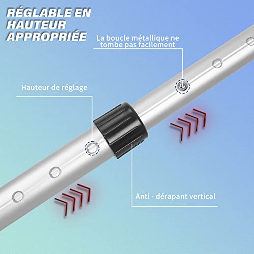 【Altezza regolabile】 Regolazione del pulsante con 4 impostazioni di altezza e 3 sezioni telescopiche. Tre sezioni telescopiche sono facili da piegare ed espandere per regolare la lunghezza di protezione desiderata, fino a 135 cm.