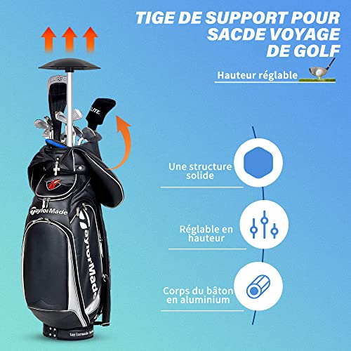 Universale: barra di supporto per borse da golf in alluminio di alta qualità, adatta per la maggior parte delle sacche da golf da viaggio, pieghevole fino a 50 cm. La borsa da golf non è inclusa. Proteggi le tue racchette da eventuali danni durante il viaggio con questo sistema di supporto da viaggio Golf Club.