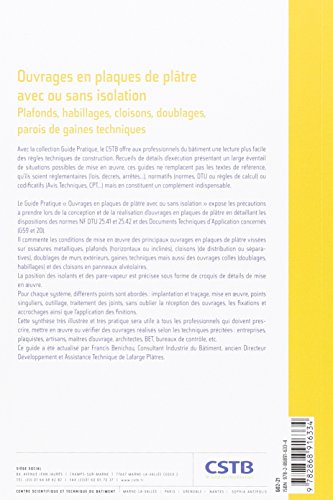 Ouvrages en plaques de pltre avec ou sans isolation: Plafonds, habillages, cloisons, doublages, parois de gaines techniques.
