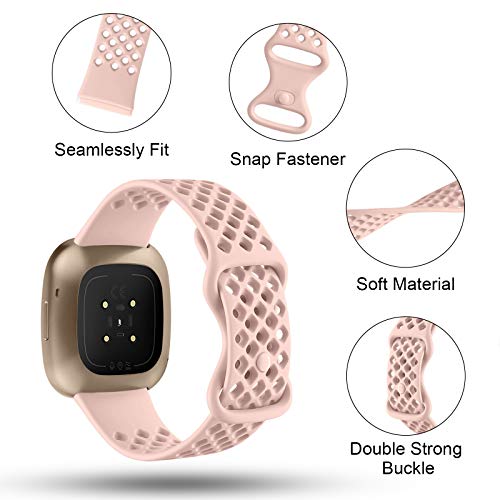 Ouwegaga Compatibile con Fitbit Versa 3/Fitbit Sense Cinturino, Sportivo in Silicone Cinturino di Ricambio Compatibile con Versa 3/Sense per Donna Uomo, Piccolo Rosa/Bianco/Turchese