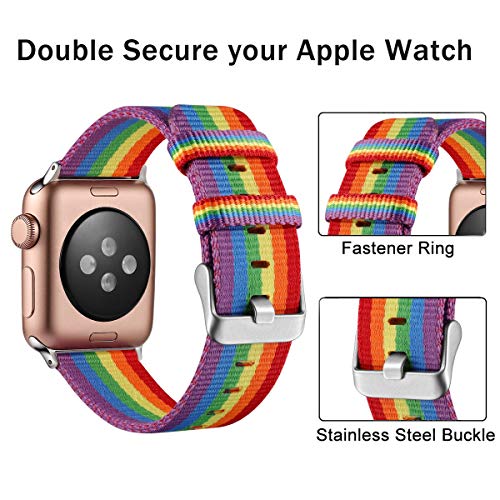 Ouwegaga Compatibile con Watch Cinturino 38mm 40mm 41mm 42mm 44mm 45mm, Ricambio in Nylon Tessuto Sportivo Cinturino Compatibile con iWatch Series 8 7 6 5 4 3 2 1 SE, Arcobaleno 38mm/40mm/41mm