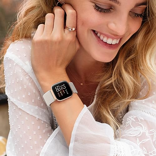 【Design Regolabile】Questo tessuto cinturino compatibile con cinturini Fitbit Versa 2 per donne ha una buona elasticità, è possibile regolare la lunghezza adatta in base al polso, il cinturino è aderente ma non stretto. I cinturini versa sono elastici, delicati per la pelle e comodi da indossare con un'ottima vestibilità