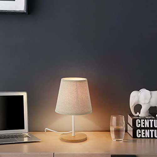 OuXean Lampada da Tavolo, E14 Semplice Lampada da Scrivania, Piccolo Paralume in Tessuto di Lino con Base in Legno, per Comodino, Camera dei Bambini, Soggiorno, Dormitorio, Ufficio, Senza Lampadina