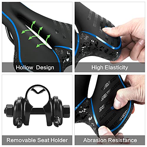 【Triplo Effetto Di Decompressione】 C'è un arco di smorzamento della sospensione con tecnologia curva nella parte inferiore della sella per assorbire meglio gli urti. Allo stesso tempo, il design aerodinamico della sella della bicicletta può prevenire efficacemente l'attrito sull'interno coscia. Il design GEL di alta qualità rende la sella più morbida e flessibile. Si adatta perfettamente ai glutei, riducendo così lo stress.