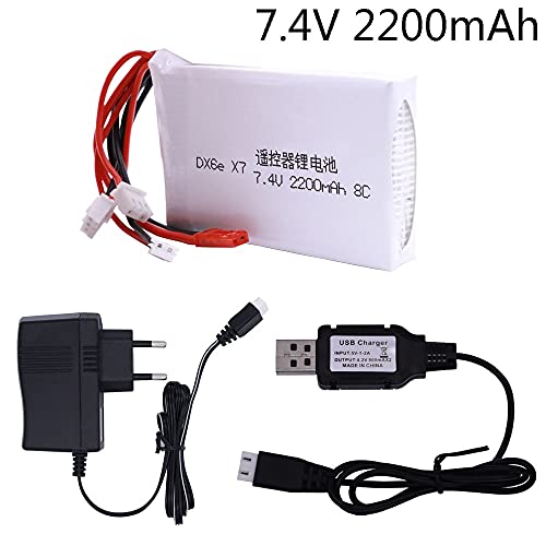OUYBO 7.4V 2200mah 8C Lipo Batteria con Caricabatterie for Parti Radiolink RC3S RC4GS RC6GS DX6e DX6 for Taranis Q X7 trasmettitore Li-Polymer Accessori per batterie di Parti RC (Color: 1B EU)