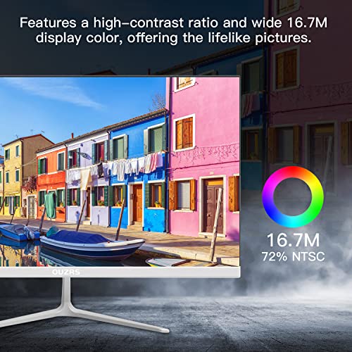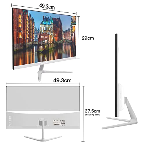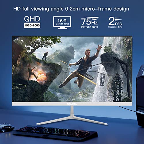 OUZRS M22 Display FullView, 22 Pollici Schermo Monitor, Full HD IPS, 1920x1080, 75 Hz, Monitor per Computer con Cornici Ultra-sottili, 2 ms, HDMI, VGA, 200 cd/m², Base Regolabile, Bianco
