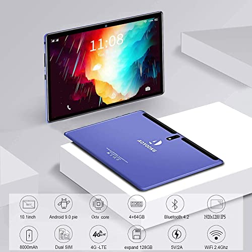 OUZRS Tablet 10 Pollici 1920x1200 HD IPS Schermo, Octa Core Android Tablet in offerta 4G LTE+Wi-Fi, 4GB RAM + 64 GB Stoccaggio 128GB Espansione, 8000mAh, 5+8MP Doppia Fotocamera,Bluetooth,GPS (Blu)