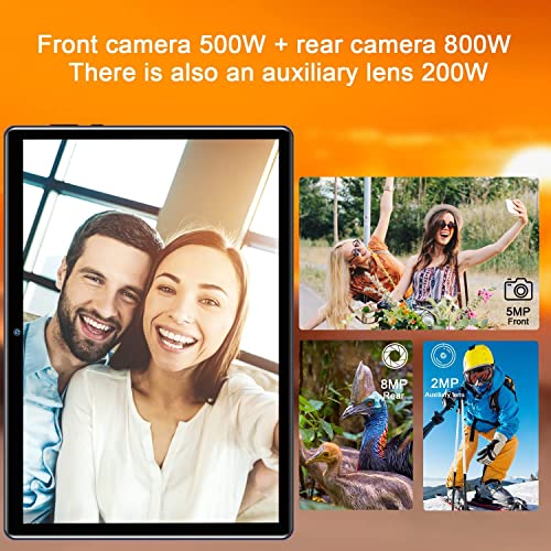 【8 MP posteriore + 5 MP HD frontale + schermo 1280 x 800 IPS HD】 Il tablet ha una fotocamera posteriore da 8 MP e una fotocamera frontale da 5 MP. Doppia fotocamera anteriore e posteriore, Cattura ogni bel momento della vita, Scatta foto e video. Schermo IPS HD 1280x800, ripristinare l'immagine al suo colore originale, consente di guardare video e film HD in modo più chiaro.