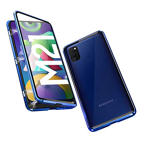Adsorbimento magnetico ★ Frontale e posteriore in vetro temperato Custodia per adsorbimento magnetico, Una cover in metallo con design Flip per Samsung Galaxy Serie M21❤ Una custodia che non necessita di proteggi schermo in vetro temperato ❤