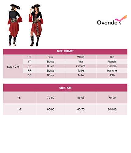 Ovender Costume Carnevale Tuta Travestimento Pirata Principessa Donna con Capello e Cintura Vestito Ragazza Cosplay Abito Adulto Festa