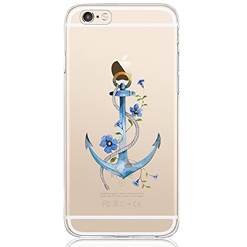 Oveo Cover iPhone 6 / 6S, Dolce Vita Serie Trasparenti Silicone Custodia per Ragazza/Donna, Trasparente con Disegni Fiori Ancora Blu
