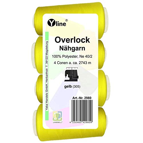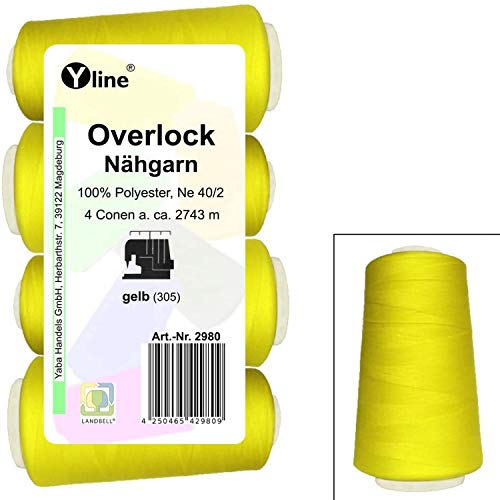 Overlock 2980 - 4 bobine di filo da cucito Overlock, 2743 m, NE 40/2, 100% poliestere, per macchina da cucire, colore: Giallo