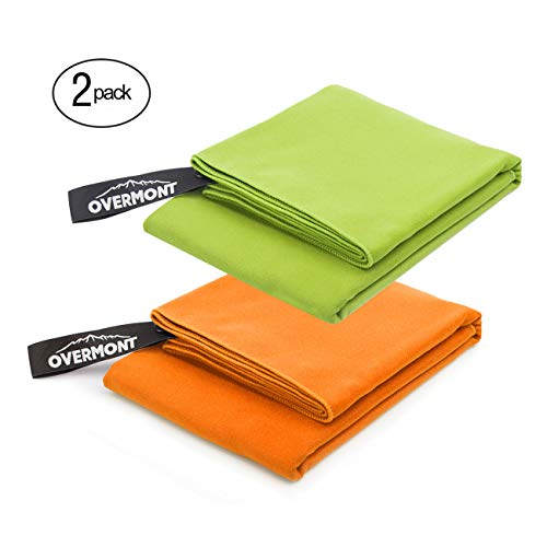 OVERMONT Asciugamani di Microfibra Per Sport e Viaggio, Nuoto, Piscina, Spiaggia, Palestra, Campeggio, Yoga, Pilates, Doccia Asciugatura Rapida ed Efficace M-Verde+Arancio