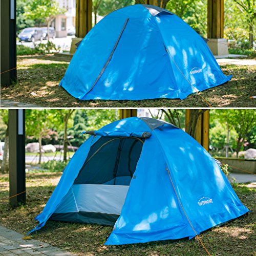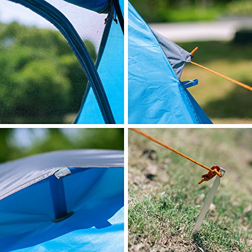 Overmont Tenda 1-2 Persone 210x130x110cm impermeabile, anti-vento, anti-UV per il campeggio, escursione, ricerca outdoor, survival. Pali di alluminio, 13 pioli di ancoraggio nel terreno, 2 corde 2.3m, 4 corde 3m BLU