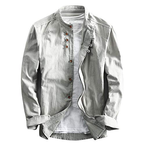 Oversize Camicia Henley in Lino Tinta Unita Stile retrò Cinese da Uomo Collo alla Coreana Maglietta T-Shirt Leggera Aderente Casual Estiva Taglie Forti Grigio Chiaro 7XL