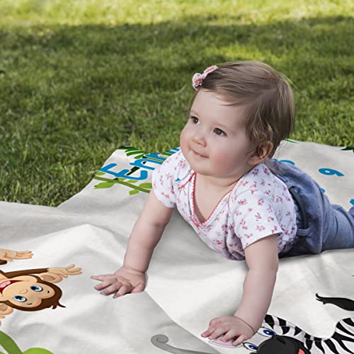 Overthetee Coperta Neonato - Mesi Settimane - Nome Personalizzato - Libro Giungla - Animali Simpatici - Selvaggio - Complimese - Compi Mese - Femminuccia - Neo Mamma - Idea regalo
