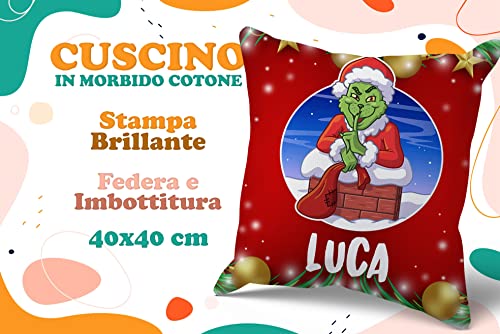 Overthetee Cuscino Natalizio Personalizzato - NOME - Grinch - Camino - Bad - Regali - Cattivo - Cuscini Feste Natale - Humor - Idee Regalo SImpatiche