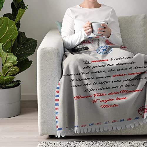 PLAID MAMMA con dedica - Scegli tra i nostri bellissimi plaid quello perfetto come regalo per la tua Mamma. Rendi uniche occasioni speciali quali: Compleanni, onomastici, Festa della Mamma, Festa della Donna! Personalizza il nome presente in grafica semplicemente cliccando sul pulsante "Personalizza Ora".