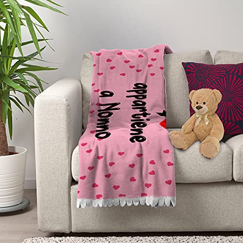 Overthetee Plaid in Pile da Neonato Nonno- Copertina Culla Neonato - Il mio cuore appartiene a Nonno - Idea Regalo Nonno - Coperta Neonato Nonno - Idea Regalo Neonato