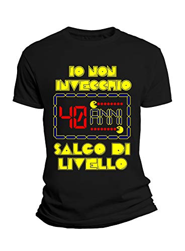 Overthetee Tshirt Compleanno 40 Anni - Io Non invecchio - Salgo di Livello - 40 Anni - Videogame - Idea Regalo