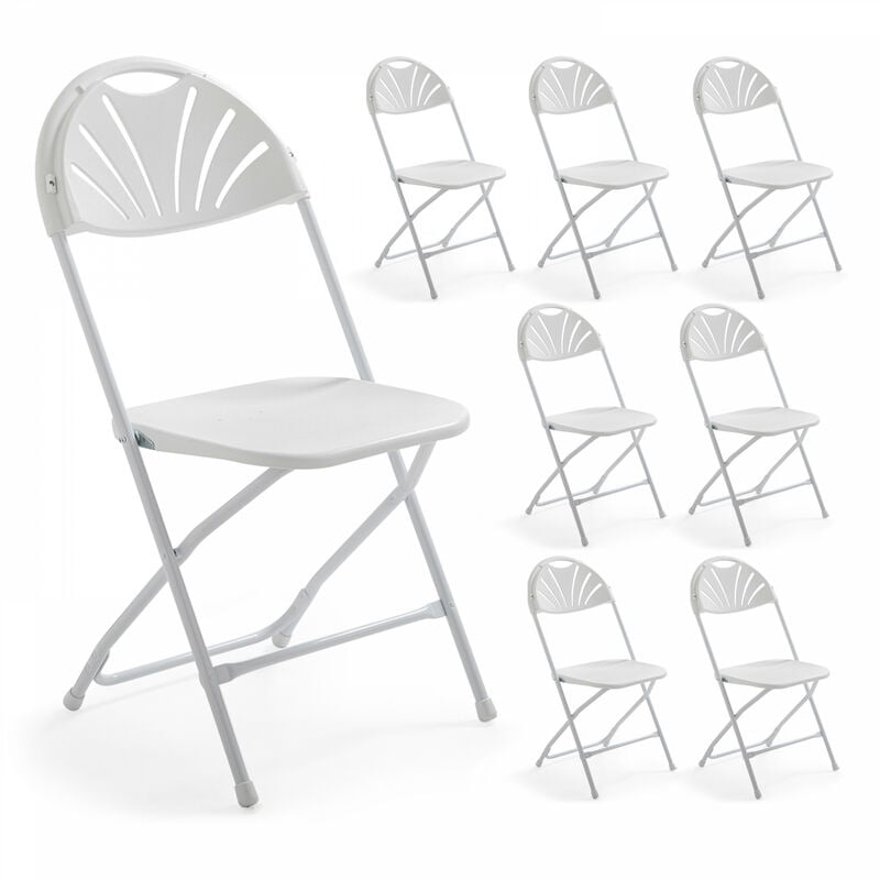 Sedia pieghevole, set di 8 - La sedia in plastica bianca con schienale traforato è pieghevole e progettata per un utilizzo sia interno che esterno. Ideale per i professionisti per organizzare ricevimenti, questa sedia pieghevole è anche perfetta come sedia supplementare per i privati. Taupeto pratica, la sedia in plastica è dotata di un sistema di drenaggio dell'acqua, che consente di utilizzarla all'esterno. La sua struttura in acciaio e resina plastica non teme né l'umidità né i raggi UV. Inoltre, la sedia pieghevole è poco ingombrante, ha piedini antiscivolo ed è resistente agli urti, alle crepe e all'antistatico. Dimensioni aperto L.45 x l.45 x H.89 cm Dimensioni chiuso H.107 x l.45 x sp.4 cm Materiale Struttura: acciaio con finitura vernice epossidica. Piano e seduta: Polietilene ad Alta Densità (PEAD) Sezione della struttura Tubi di sezione rotonda 19mm Colore Bianco Carico massimo supportato Carico massimo supportato 110kg Utilizzo professionale Utilizzo professionale intensivo