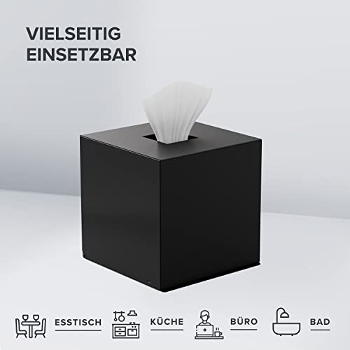Ovimar Teksmona - Set di asciugamani quadrati in acciaio INOX, colore: nero opaco, perfetto per fazzoletti, asciugamani di carta o cosmetici, a forma di cubo, per bagno, cucina o tavolo da pranzo