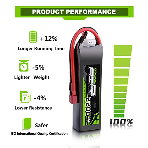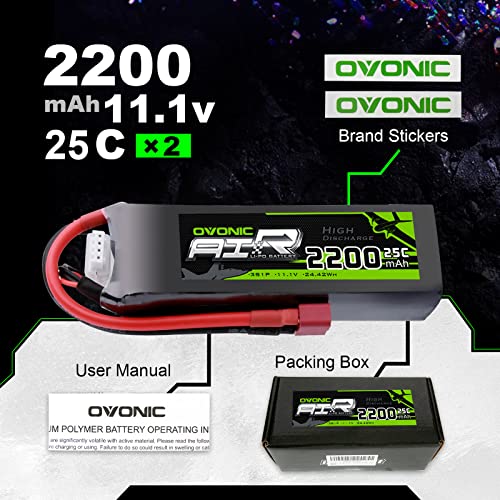 OVONIC Lipo Batteria 11.1V 2200mAh 25C 3S con presa Deans per RC Auto Barca Camion Heli Aereo Quadcopter Elicottero Multi-Motore Hobby Parti Fai da Te (2 Confezioni)
