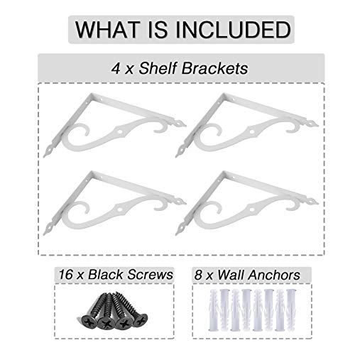 Facile installazione: la confezione include 4 staffe da parete e tutte le viti e gli ancoraggi necessari. Hai solo bisogno di preparare un cacciavite per la tua nuova installazione di staffe per scaffalature!