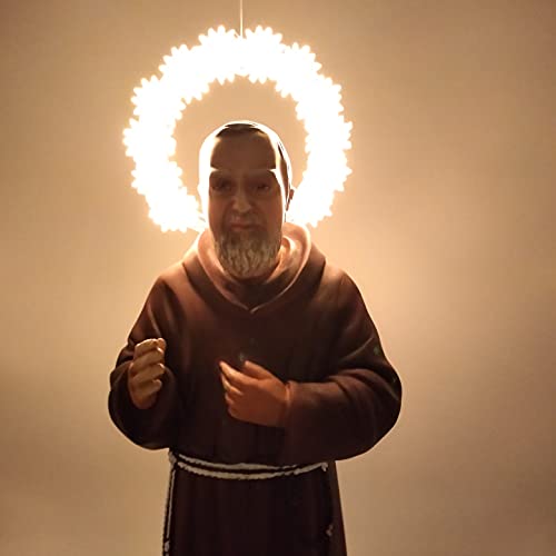 L'aureola luminosa è in plexiglass, la tensione è 220/230V, le luci hanno una durata di 2000 ore, e sono di colore bianco caldo.
