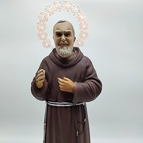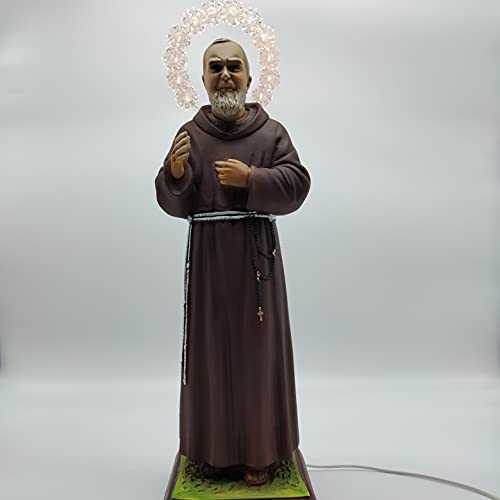 OVUNQUE PROTEGGIMI Statua Padre Pio da Pietrelcina cm 40 in resina con aureola illuminata