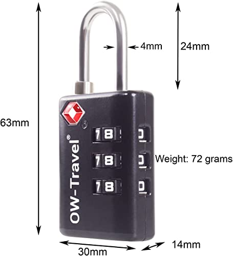 OW-Travel Lucchetto Combinazione Aprire Alert Indicatore TSA per Valigie e Bagagli. Lucchetto con combinazione per lucchetto armadietto, lucchetto palestra. Serratura a combinazione Nero 4 pezzi